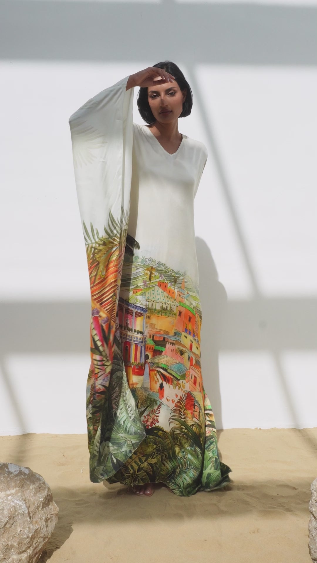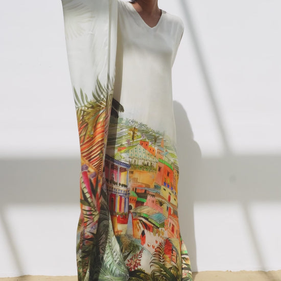 قفطان ألمع يجمع بين الحرفية التقليدية والتصميم المعاصر في قطعة فاخرة متميزة. مصنوع من حرير 100٪ خالص، يوفر ملمسًا ناعمًا استثنائيًا وخصائص انسيابية تعانق الجسم برقة وخفة. القصة الواسعة المنسدلة والأكمام الفضفاضة توفران حرية حركة كاملة مع حضور هادئ وراقي، مدعومة بياقة بسيطة تبرز الأنوثة بأناقة. النقشة المميزة مستوحاة من جبال ألمع ورجال ألمع في جنوب المملكة، حيث تعكس الألوان والتفاصيل جمال الطبيعة الجبلية والعمارة التراثية الأصيلة. كل رسمة تم إنجازها يدويًا بدقة حرفية قبل تحويلها إلى طبعة فنية على القماش، مما يحافظ على أصالة التصميم. قطعة متعددة الاستخدامات تجمع بين الراحة والفخامة.